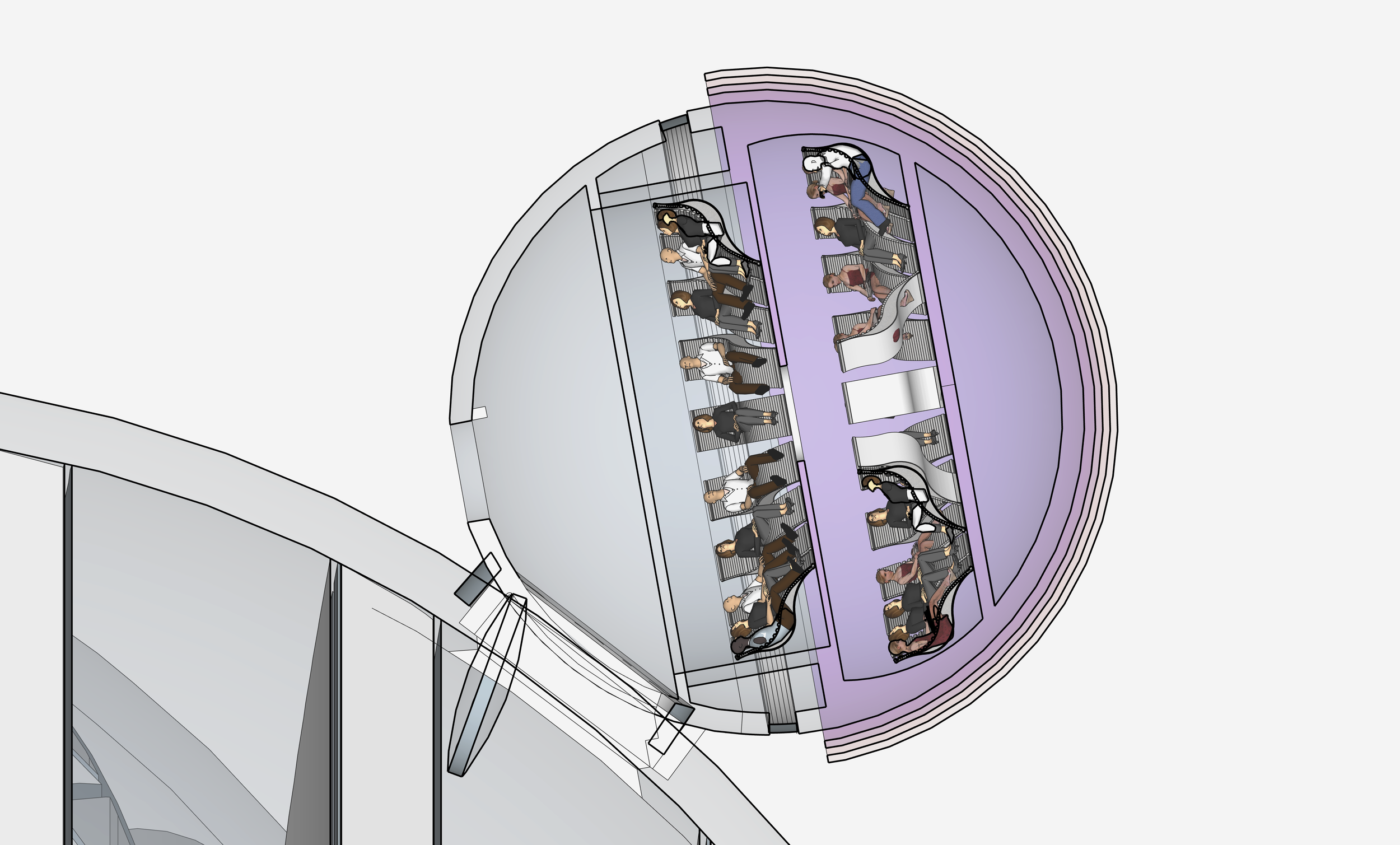 SECTION THRU TYPICAL LIFE POD. POD HOLDS 50 GUESTS.